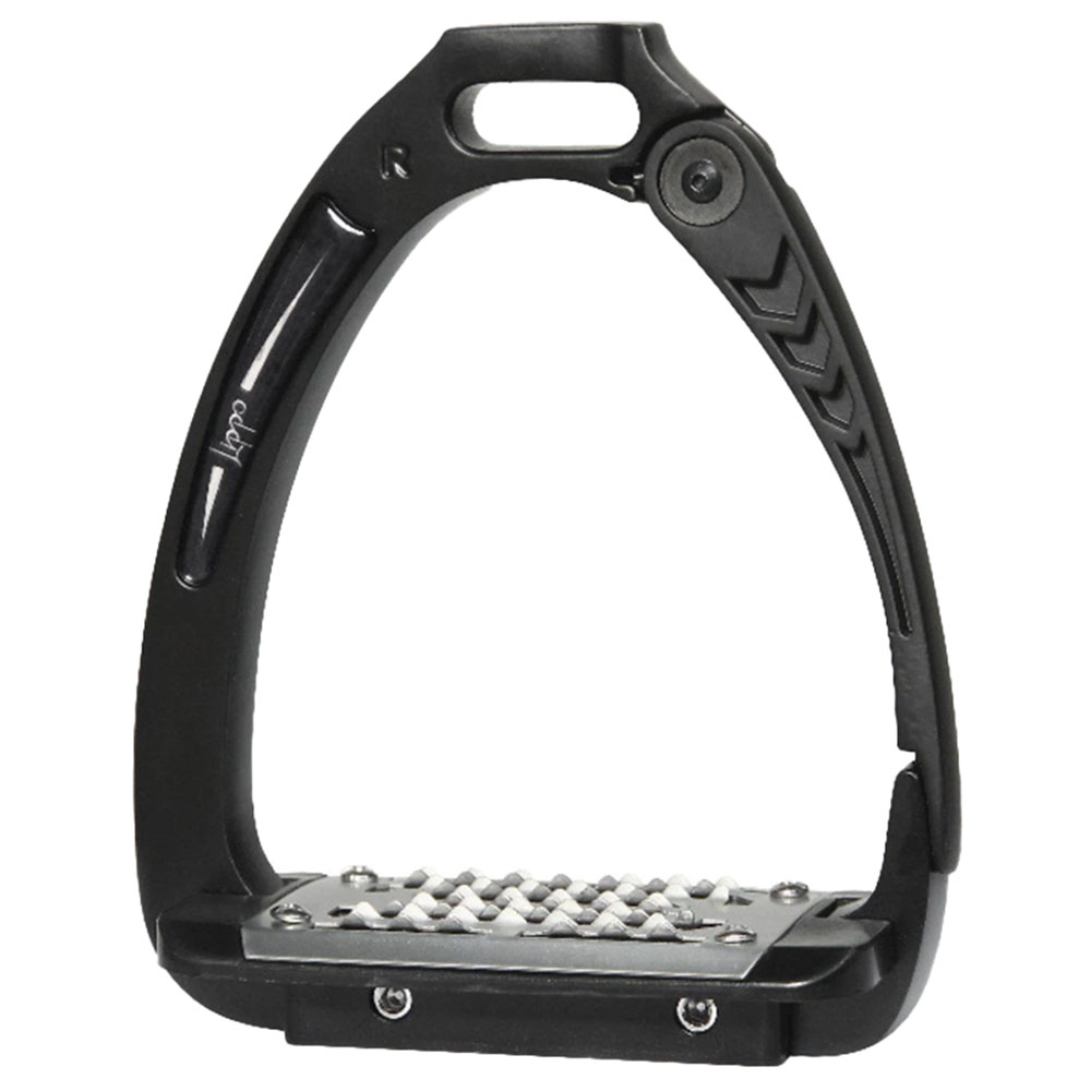 Strzemiona posiadają lekką elastyczność, która poprawia balans i komfort podczas jazdy. Szeroka platforma ze stali nierdzewnej z antypoślizgowymi wypustkami zapewnia bardzo dobrą przyczepność. Dodatkowo długie poziome otwory w platformie umożliwiają odpływ piasku i brudu, co pomaga utrzymać stabilny kontakt stopy ze strzemieniem w każdych warunkach.