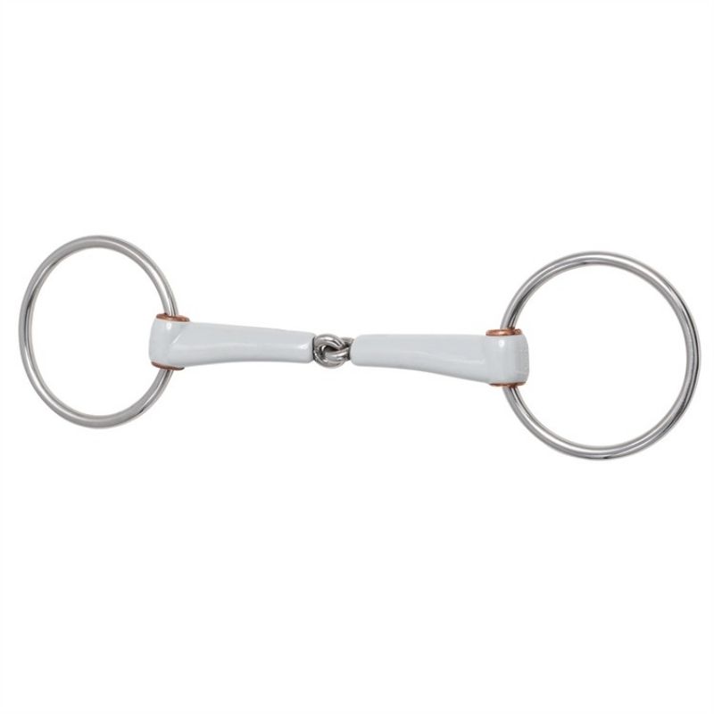 Pojedynczo łamane wędzidło Beris posiada plastikowy ścięgierz z szerokimi powierzchniami kontaktowymi na języku i dziąsłach, co zapewnia równomierne rozłożenie nacisku i zwiększony komfort dla konia. Jego węższy profil sprawia, że wędzidło zajmuje mniej miejsca w pysku, zapewniając płynne odczucie. Materiał ma bardzo gładką powierzchnię, która zapewnia dobry poślizg, nawet u koni, które mniej się ślinią. Ścięgierz jest w wersji Medium Soft, oferując zrównoważoną kombinację stabilności i elastyczności w kontakcie. Luźne pierścienie pozwalają wędzidłu swobodnie poruszać się w pysku, co może zapewnić bardziej dynamiczny kontakt. Pierścienie przechodzą przez zintegrowane tuleje miedziane, zmniejszając tarcie i zwiększając trwałość.