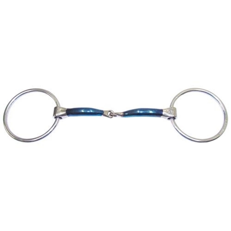 Wędzidło z popularnej marki Bombers, Pojedynczo łamane z luźnymi pierścieniami oraz funkcją Lock Up, co oznacza, że wędzidło blokuje się i działa jak proste wędzidło, gdy koń gryzie lub ciągnie za wędzidło. Zaletą tego jest to, że wędzidło zmienia swoją funkcję, co ułatwia jeźdźcowi odzyskanie kontroli. Niebieskie obszary mają rdzewieć, aby stać się słodkie i zwiększyć wydzielanie śliny u konia, co ułatwia akceptację wędzidła.