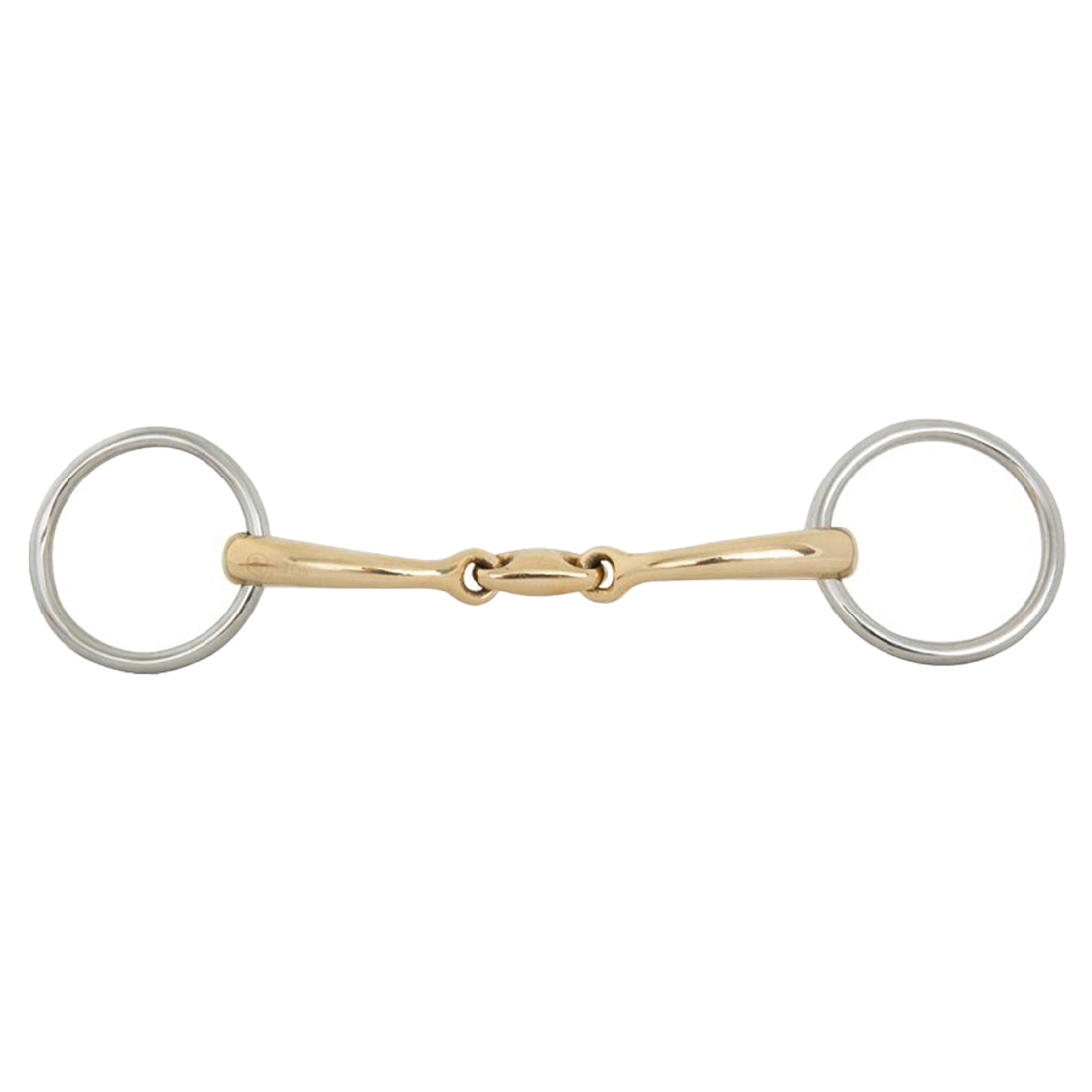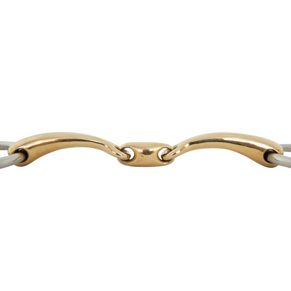Wędzidło podwójnie łamane typu bradoon z luźnymi pierścieniami, o anatomicznym kształcie dopasowanym do pyska konia. Zapewnia łagodne i równomierne rozłożenie nacisku.