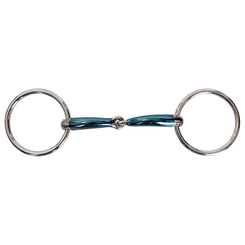 Wysokiej jakości wędzidło zwykłe pojedynczo łamane marki Lippo z luźnymi pierścieniami, wykonane ze stali nierdzewnej i pokryte powłoką Blue Sweet Iron.