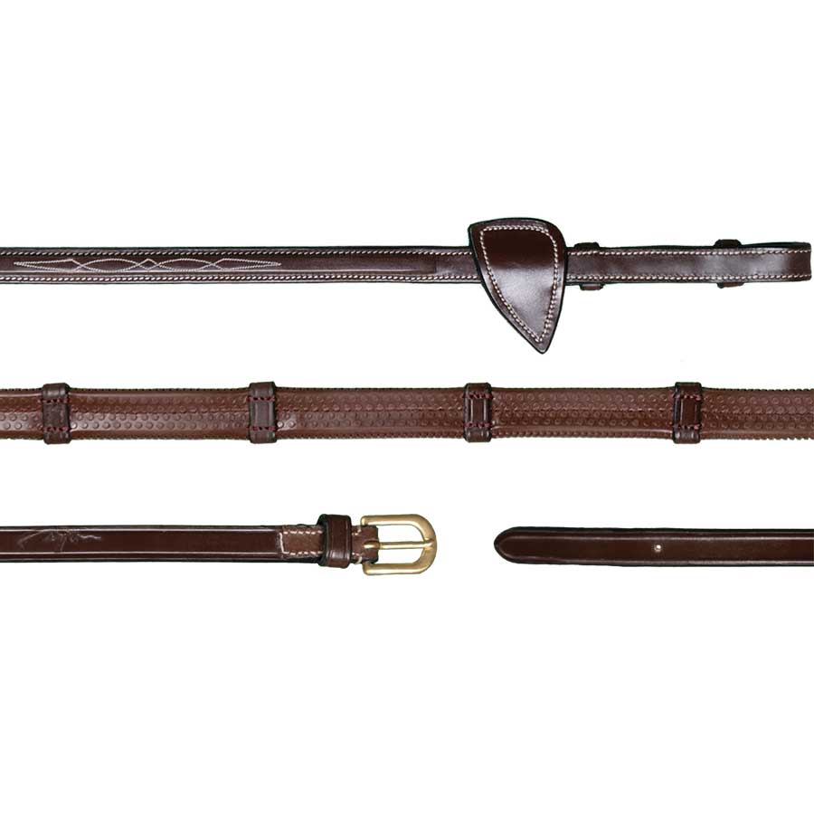 • Gumowe wodze marki Dyon z kolekcji Dyon Collection o szerokości 13 mm (1/2"), wyposażone w stopery zapewniające pewny i stabilny chwyt podczas jazdy. Wykonane z wysokiej jakości hiszpańskiej skóry oraz posiadają sprzączki skierowane do wewnątrz przy wędzidle.