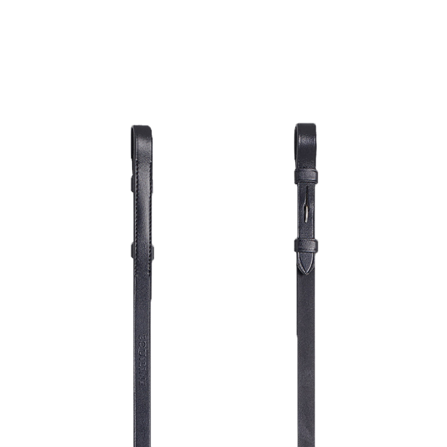 Klasyczne, gładkie wodze munsztukowe marki Equiline, wykonane z czarnej skóry. Dzięki sprzączkom skierowanym do wewnątrz można je łatwo i szybko przypiąć do wędzidła. Prosty, elegancki model zapewniający bezpośredni kontakt z koniem.