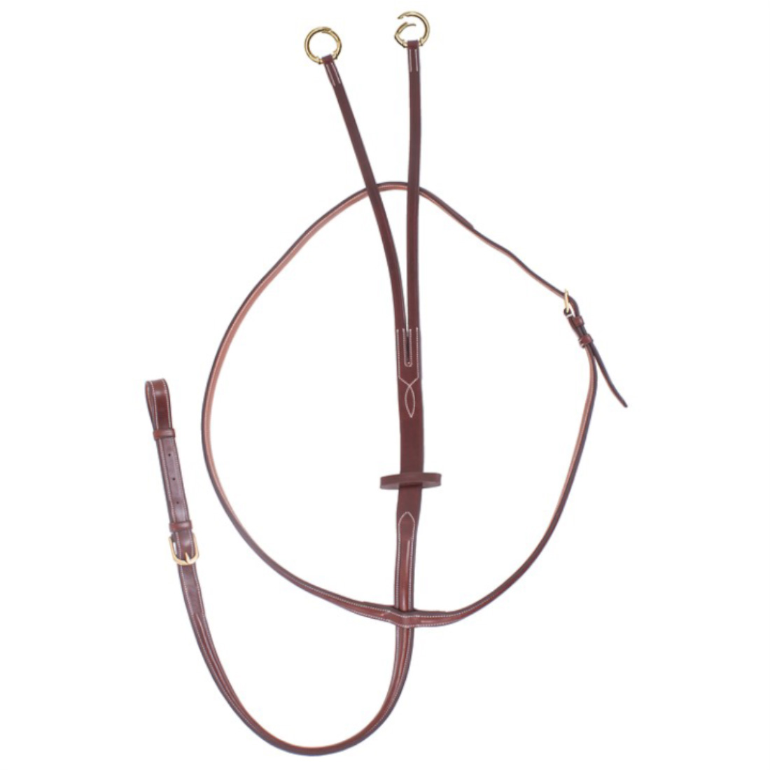 Wysokiej jakości wytok marki Equality Line wykonany z brązowej, włoskiej skóry. Model wyposażony jest w innowacyjne, otwierane pierścienie, które ułatwiają szybkie przypięcie wytoku do wodzy.