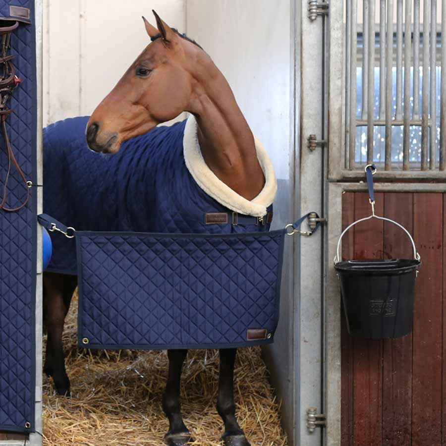 Trwałe paski wieszane od Kentucky w granatowym kolorze to innowacyjne i praktyczne rozwiązanie, które dzięki łatwemu zawieszaniu różnych rodzajów sprzętu stajennego znacznie ułatwia codzienne życie. Zakres zastosowania uchwytu jest niezwykle szeroki, ale może być na przykład używany do siatek na siano, siatek kurzych, zabawek dla koni i ciężkich wiader na wodę.