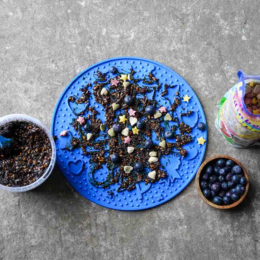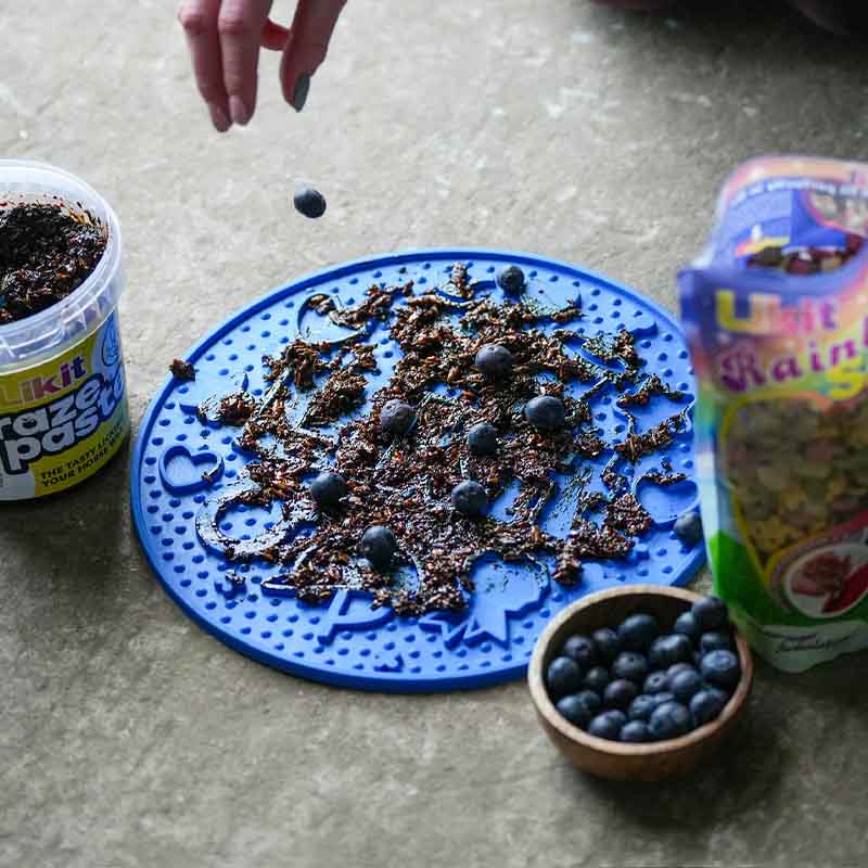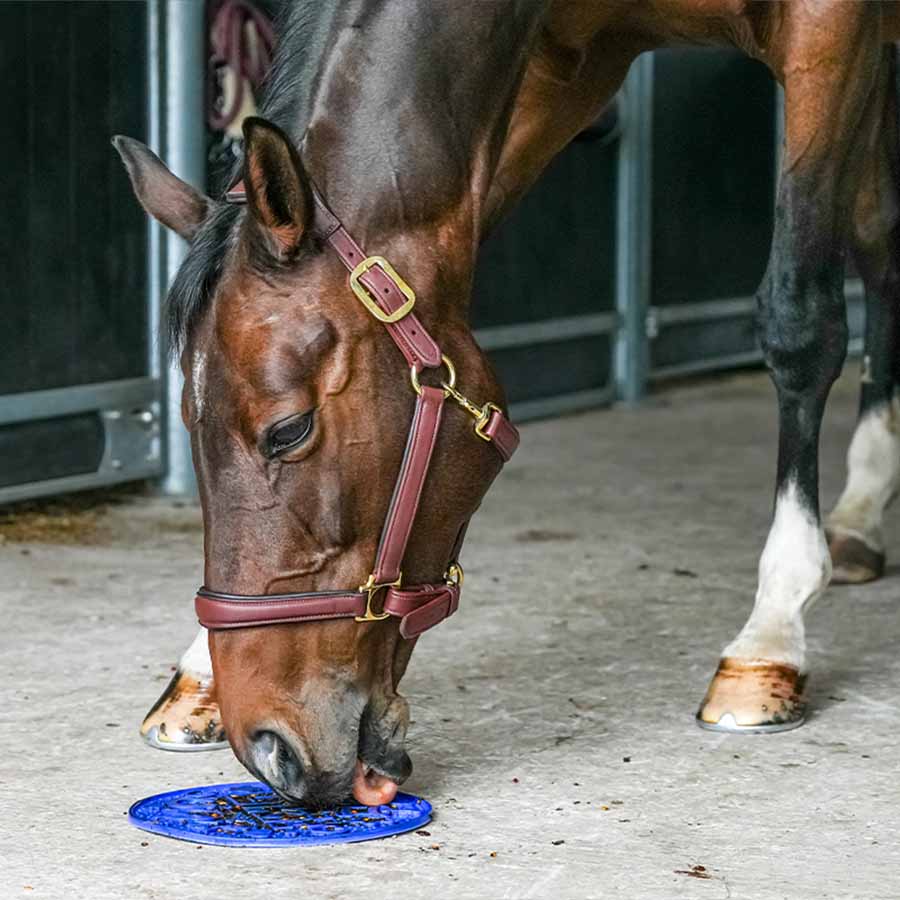 Lejąca pasta przysmakowa, łatwo rozprowadzana po całej silikonowej macie, przylega do uniesionego wzoru labiryntu, co utrudnia koniowi dostęp, zapewniając stymulację umysłową i wydłużając czas karmienia. Mata do likania może być używana jako odwrócenie uwagi, zabawka wzbogacająca, nagroda lub jako alternatywna metoda karmienia dla koni skłonnych do połykaniu jedzenia.