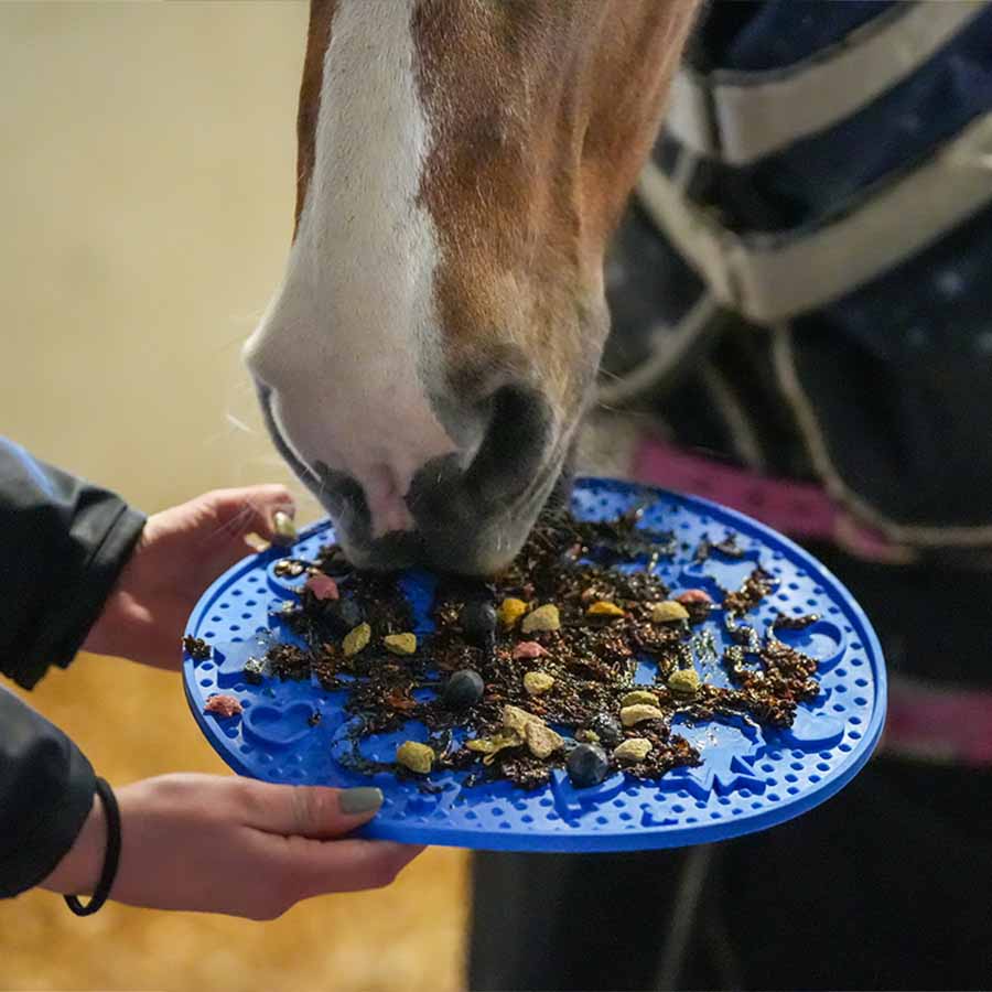 LikIt Graze Maze w pięknym, jasnoniebieskim kolorze to innowacyjna mata do powolnego karmienia, która w połączeniu z LikIt Graze Paste lub innymi przysmakami dla koni, zapewnia Twojemu koniowi smakowitą i zabawną aktywność, która skutecznie zwalcza nudę oraz niepokój - jakie to sprytne?