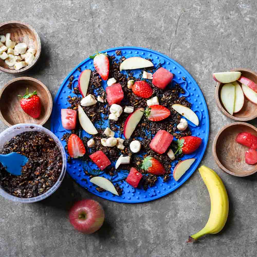 LikIt Graze Maze można umieścić bezpośrednio na podłodze, zarówno w boksie, jak i korytarzu stajennym, lub umieścić w gumowej misce, aby nieco unieść krawędzie maty z przysmakami. Pamiętaj, aby po każdym użyciu umyć matę do likania, aby utrzymać ją w czystości i świeżości na dłużej.