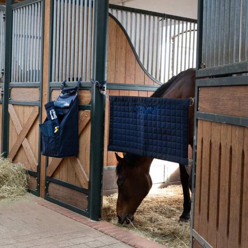 Eskadron Box Stop Short to praktyczna i wyściełana bramka do boksu w kolorze granatowym, zaprojektowana do mocowania przy otworze drzwi boksu. Zapewnia koniowi wygrodzenie w komfortowy i bezpieczny sposób, jednocześnie umożliwiając lepszą cyrkulację powietrza i widoczność niż zamknięte drzwi. Pikowana konstrukcja zapewnia dodatkową stabilność i trwałość, a regulowane paski umożliwiają łatwe i pewne mocowanie w różnych warunkach stajennych. Dzięki wymiarom 95 x 50 cm produkt jest łatwy w obsłudze i doskonale sprawdza się na co dzień.