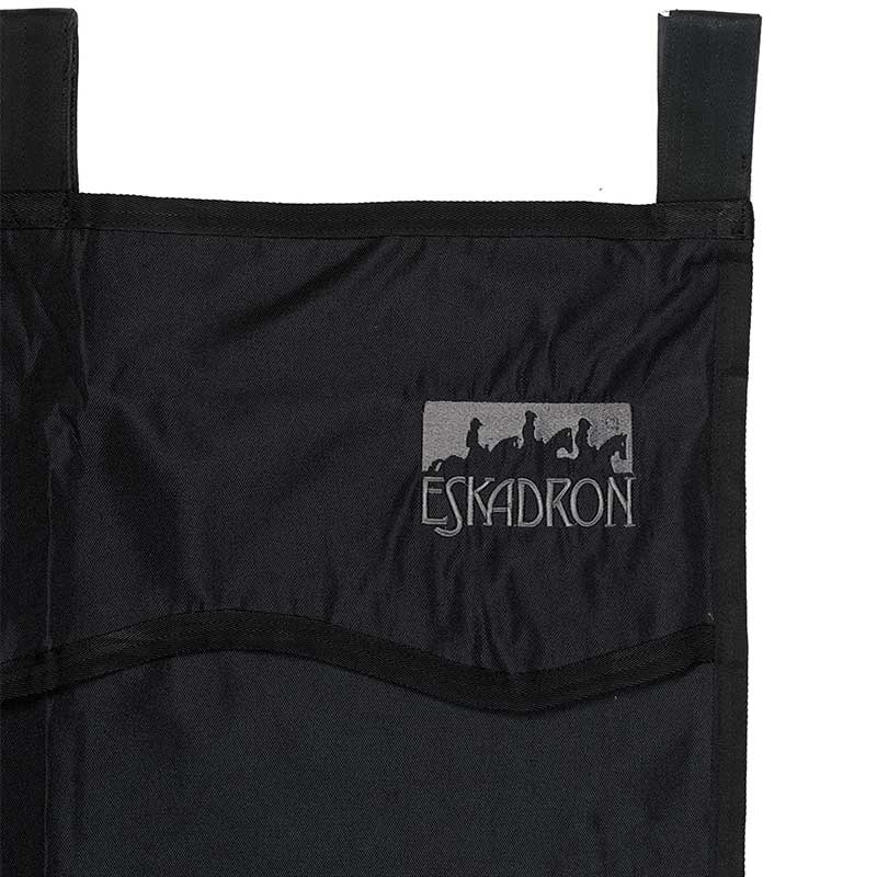• Solidna zasłona na box od Eskadron o wysokości 190 cm i szerokości 150 cm. Małe logo Eskadron w górnym prawym rogu, w przeciwnym razie dostępna jest pusta przestrzeń na logotypy sponsorów lub podobne nadruki. Łatwa do przymocowania do boxu dzięki solidnym i trwałym zapięciom na rzep wzdłuż górnej krawędzi. Łatwa do wyczyszczenia, aby zachować porządek i świeżość między zawodami.