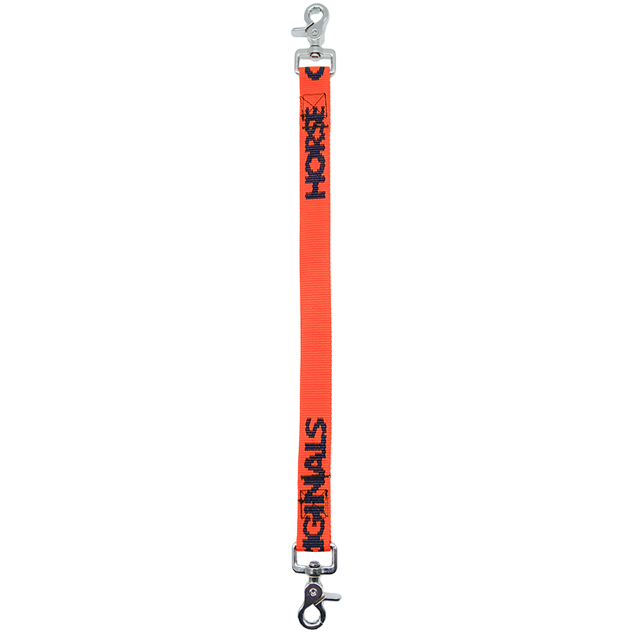 Pomarańczowy pasek ma długość 50 cm, z karabińczykiem na każdym końcu.
