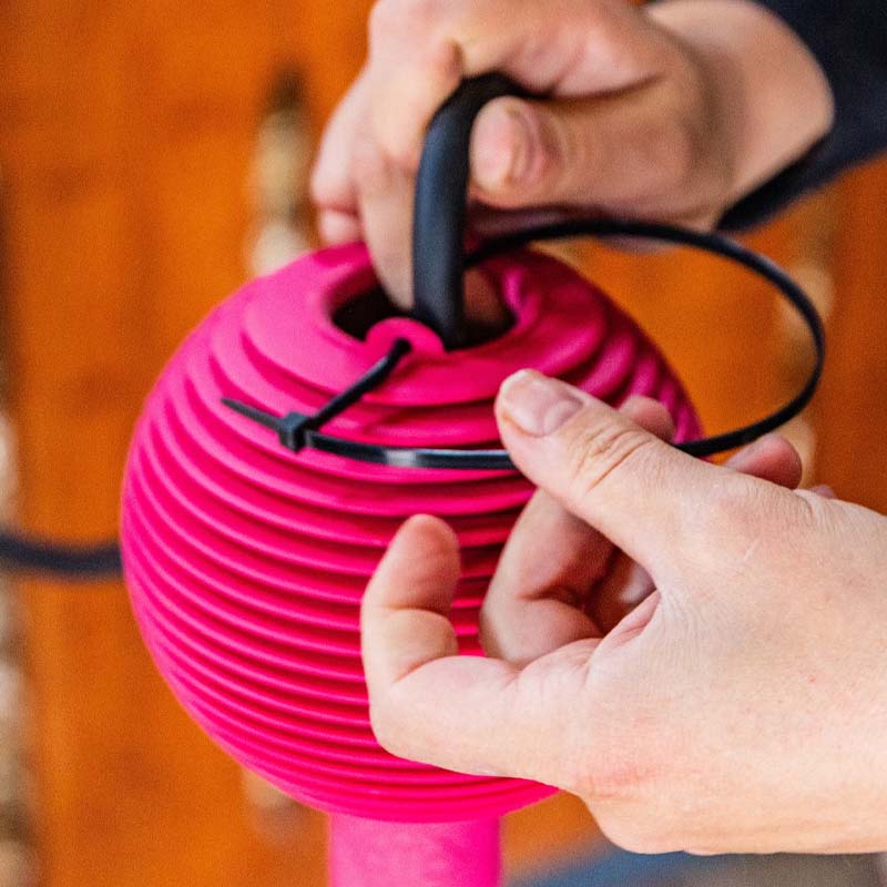 Kulka łatwo nakłada się na metalową sprzączkę i dobrze się trzyma dzięki swojemu kształtowi. Rowki poprawiają przyczepność i tłumienie ruchu.