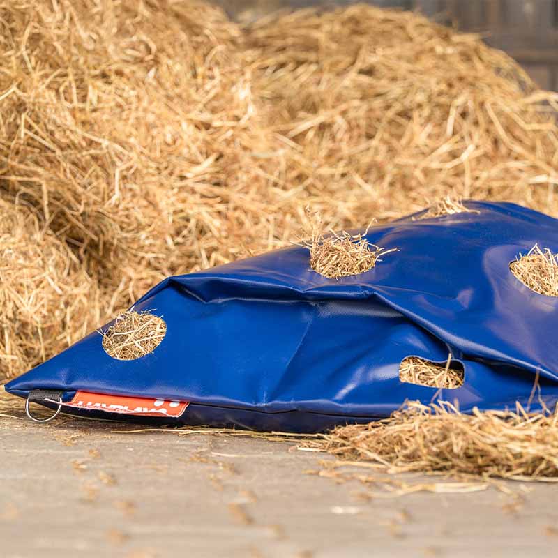 HayPlay Bag Medium wykonany jest z wysokiej jakości materiału, który łatwo utrzymać w czystości, i może być używany zarówno na padoku, jak i w stajni. Worek na siano jest również bardzo łatwy do napełnienia, a na końcu zamykany jest za pomocą praktycznych metalowych guzików.