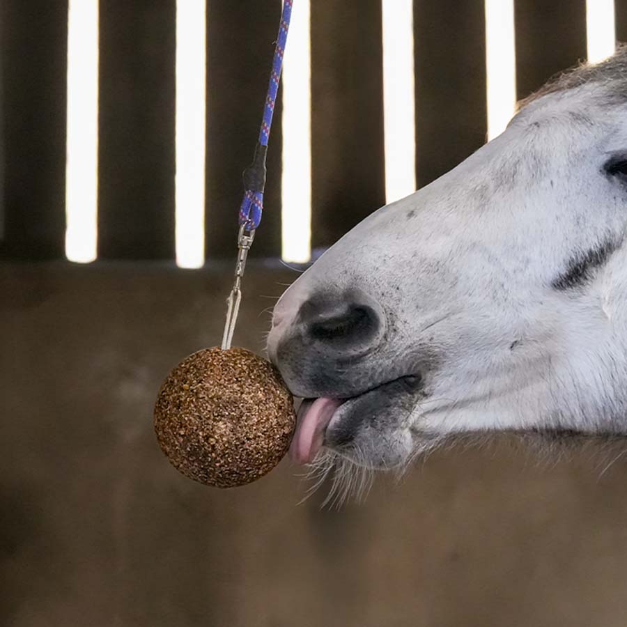 Zasada działania jest prosta: kula aktywizująca, dzięki zintegrowanej linie, jest zawieszana w boksie lub na padoku konia, aby mógł ją lizać, kiedy tylko zechce. Idealne w stajniach sportowych, podczas odpoczynku w boksie, dla koni, które łatwo się nudzą i potrzebują zajęcia, lub jeśli po prostu chcesz rozpieszczać swojego konia czymś wyjątkowo smacznym!