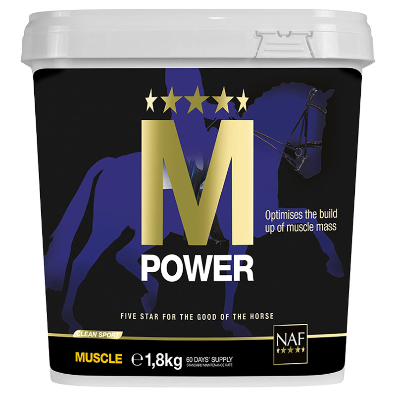 NAF M Power to wysokiej jakości suplement dla koni w treningu, które potrzebują wsparcia żywieniowego w zakresie masy mięśniowej, siły i regeneracji. Produkt został opracowany dla koni z naciskiem na osiągi, rozwój i długoterminową trwałość. Dzięki zbilansowanemu składowi aminokwasów, witamin i pierwiastków śladowych M Power wspiera budowę mięśni, regenerację oraz prawidłowe funkcjonowanie – zarówno podczas codziennego treningu, jak i w przygotowaniach do zawodów.