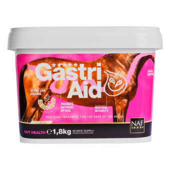 NAF GastrAid to suplement wspierający funkcjonowanie całego układu pokarmowego konia – od żołądka aż po jelito grube. Pomaga utrzymać prawidłowe trawienie, zdrowie jelit oraz ogólne dobre samopoczucie.